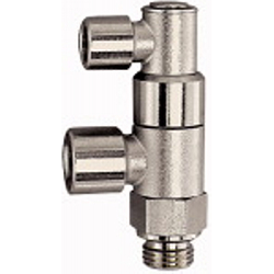 Stoppventil pneumatisch betätigt, G 3/8, G 3/8 i., G 1/8 i., Arbeitsdr. max. 10 bar, Mediums-/Umgebungstemp. max. 70 °C, MS vern.. Für schnelle Positionier- und Stopp-Funktionen und für Not-Schaltungen (z.B. Not-Aus). Liegt am Anschluss 3 ein Steuersignal an, kann die Druckluft vom und zum Zylinder fließen. Liegt kein Steuersignal mehr an, wird der Druckluftstrom vom und zum Zylinder gesperrt und dadurch der Zylinder in der gewünschten Position gestoppt. Die Stopp-Ventile werden anstelle der normalen Schlauchanschlüsse direkt auf den Zylinder geschraubt. Hinweis: Der Steuerdruck ist abhängig vom Betriebsdruck.