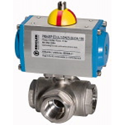 Edelstahlkugelhahn, pneumat. Stellantrieb, T-Bohrung T1, Rp 1/2