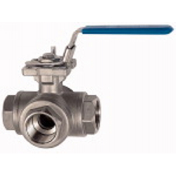 3-Wege-Kugelhahn, L-Bohrung, Edelstahl 1.4408, G 3/4, DN 16, Betriebstemperatur -20 °C bis 180 °C, PN max. 63 bar. Wahlweise mit L- oder T-Bohrung, reduzierter Durchgang. Allseitig dichtende Ausführung mit integrierter ISO-Flanschplatte (ISO 5211). Mehrere Schaltvarianten durch 360° Hebeldrehung.