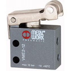 3/2-Wege-Miniaturventil, mechanisch, Rollenhebel, NO, Anschluss M5 seitlich, Betriebsdr. 0,5-10 bar, Betriebstemp. -10°C bis 60°C. Miniventile in 3/2-Wege-Ausführung NC oder NO.