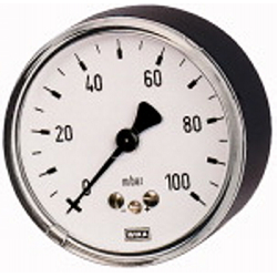 Kapselfedermanometer, Gehäuse Stahl, Anschluss hinten zentrisch, G 1/4, Typ 611.10, Güteklasse 1,6, Messber. 0 - 40 mbar, Ø 63. Mit Nullpunktkorrektur.