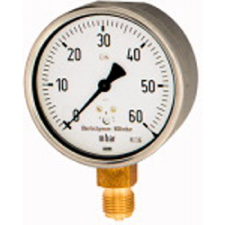 Kapselfedermano., 10-fach überlastbar, Gehäuse CrNi-Stahl, Anschluss radial unten, G 1/2, Gütekl. 1,6, Messber. 0 - 60 mbar, Ø 100. 10-fach überlastbar, mit Nullpunktkorrektur.