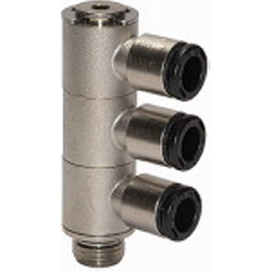 L-Mehrfachverteiler 3-fach »click-clock«, drehbar, G 1/4 a., für Schlauch-Außen-Ø 10 mm, Arbeitsdruck max. 16 bar, Messing vern.. Die Weiterentwicklung unserer höchst erfolgreichen Schnellsteckverbinder-Serie im Material Messing vernickelt.