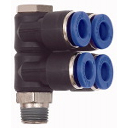 L-Mehrfachverteiler »Blaue Serie«, 4-fach, drehbar, R 3/8 a., für Schl.-Außen-Ø 10 mm, Arbeitsdr. max. 15 bar, Kunststoff/MS vern.. Unsere Schnellsteckverbinder-Serie aus Kunststoff bzw. vernickeltem Messing. Die Teile sind einsetzbar in Verbindung mit Kunststoffschläuchen und Kupferrohren.