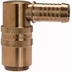Temperierkupplung DN 9, Zapfen 13 mm, Absperrventil, MS, Schlauchtülle 90°, PN max. 15 bar, Mediums/Umgebungstemp. -20°C bis 160°C. Kompatibel mit System HASCO Z 8.