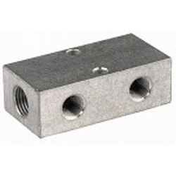 Verteilerleiste, Abgänge beidseitig vorne und hinten, Eingang 2 x 1/4, Ausgang 3 + 3 x 1/8, Aluminium. Zur einfachen Montage von Druckluft-Entnahmestellen (Verschraubungen, Steckverbinder, Kupplungen etc.). Wahlweise mit 2, 3, 4 oder 6 Abgängen, einseitig oder beidseitig.