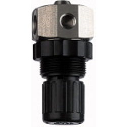 Edelstahl-Druckregler, 1.4571, für flüssige Medien, ohne Manometer, G 1/4, Regelbereich 0,5 - 10 bar, Eingangsdruck max. 25 bar. Membrandruckregler ohne Sekundärentlüftung. Druckeinstellung kann durch Eindrücken des Handrads arretiert werden.