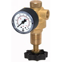 Druckregler für Wasser, inkl. Manometer, G 1/4, Regelbereich 0,5 - 10 bar, Eingangsdruck max. 40 bar, Temp. 5 °C bis 90 °C. Membrandruckregler aus Messing ohne Sekundärentlüftung, speziell für den Betrieb mit Wasser. Der Regler schützt Wasserinstallationen vor zu hohem Leitungsdruck, vermeidet Druckschwankungen und hilft so den Wasserverbrauch zu senken. Gleichzeitig werden störende Fließgeräusche verringert.