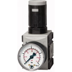 Präzisionsdruckregler, durchg. Druckversorgung »FUTURA«, inkl. Manometer, BG 2, G 3/8, PE max. 16 bar, Regelbereich 0,2 - 4 bar. Anreihbare Präzisions-Membrandruckregler mit Sekundärentlüftung in modernem Design und mit hervorragenden Durchflusswerten. Durch Verblockung von mindestens zwei oder mehreren Reglern können über eine Zuluftzuführung mehrere Arbeitsluftkreise mit verschiedenen Drücken versorgt werden.