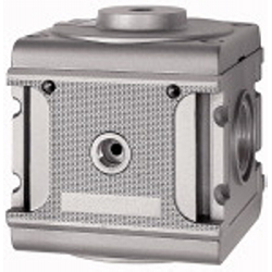 Druckregler pneumatisch ferngesteuert »multifix«, ohne Manometer, BG 5, G 1, Steuerluft G 1/4, Eingangsdruck max. 16 bar. Pneumatisch ferngesteuerter Membrandruckregler mit Sekundärentlüftung. Die Druckeinstellung erfolgt über einen Pilotdruckregler (Übersetzungsverhältnis 1:1). Der Ausgangsdruck entspricht dem am Pilotregler eingestellten Druck. Als Pilotdruckregler können ein normaler Standarddruckregler oder ein Präzisionsdruckregler eingesetzt werden.