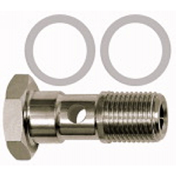 Hohlschraube mit PTFE-Dichtring, einfach, G 1/2, Arbeitsdruck max. 15 bar, Edelstahl 1.4404. Für den Einsatz mit aggressiven Medien und bei korrosiven Außeneinflüssen, in der Lebensmittelindustrie und im Hygiene- und Sanitärbereich.