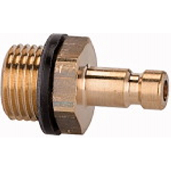 Nippel für Kupplungen NW 2,7, Messing blank, M5 AG, SW 7, Betriebsdruck 0 - 35 bar, Mediums-/Umgebungstemp. -20 °C bis 100 °C.
