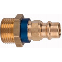 Unverwechselbarer Nippel NW 7,8, Messing blank, G 3/8 AG, blau, Betriebsdruck 0-35 bar, Mediums-/Umgebungstemp. -20 °C bis 100 °C.