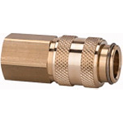 Schnellverschlusskupplung NW 5, beidseitig absperrend, MS blank, G 1/8 IG, Betriebsdr. 0-35 bar, Med.-/Umgeb.temp. -20°C bis 100°C. Sowohl die Kupplung als auch der Verschlussnippel sind mit einem Ventil ausgerüstet.