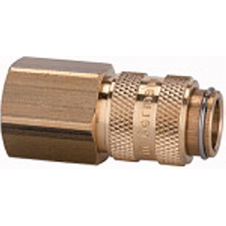 Schnellverschlusskupplung NW 5, Messing blank, G 1/4 IG, Betriebsdruck 0 - 35 bar, Mediums-/Umgebungstemp. -20 °C bis 100 °C. Einseitig absperrende Einhand-Schnellverschlusskupplung mit kleinen Baumaßen und großem Durchgang bei geringem Druckabfall. Um Verletzungen oder den Peitschenhiebeffekt zu vermeiden, empfehlen wir den Stecknippel beim Entkuppeln mit einer Hand festzuhalten.