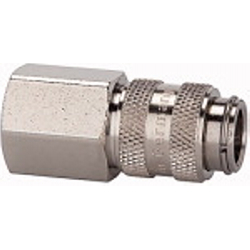 Schnellverschlusskupplung NW 5, Messing vernickelt, G 1/4 IG, Betriebsdruck 0 - 35 bar, Mediums-/Umgebungstemp. -20 °C bis 100 °C. Einseitig absperrende Einhand-Schnellverschlusskupplung mit kleinen Baumaßen und großem Durchgang bei geringem Druckabfall. Um Verletzungen oder den Peitschenhiebeffekt zu vermeiden, empfehlen wir den Stecknippel beim Entkuppeln mit einer Hand festzuhalten.