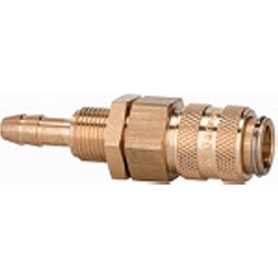 Schnellverschlusskupplung NW 5, MS blank, Tülle LW 4, Schottgew. M10x1, Betriebsdr. 0-35 bar, Mediums-/Umgeb.temp. -20°C bis 100°C. Einseitig absperrende Einhand-Schnellverschlusskupplung mit kleinen Baumaßen und großem Durchgang bei geringem Druckabfall. Um Verletzungen oder den Peitschenhiebeffekt zu vermeiden, empfehlen wir den Stecknippel beim Entkuppeln mit einer Hand festzuhalten.