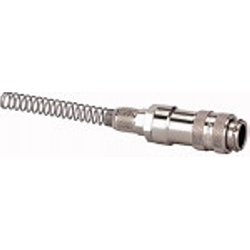 Schnellverschlusskupplung NW 5, MS vern., drehbar, Schlauchanschl. 8x6, Betriebsdr. 0-35 bar, Mediums-/Umgeb.temp. -20°C bis 100°C. Einseitig absperrende Einhand-Schnellverschlusskupplung mit kleinen Baumaßen und großem Durchgang bei geringem Druckabfall. Um Verletzungen oder den Peitschenhiebeffekt zu vermeiden, empfehlen wir den Stecknippel beim Entkuppeln mit einer Hand festzuhalten.