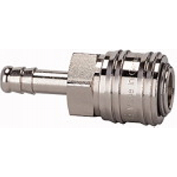 Schnellverschlusskupplung NW 7,2, Messing vern., Tülle LW 8, Betriebsdruck 0 - 35 bar, Mediums-/Umgebungstemp. -20 °C bis 100 °C. Die universelle Einhand-Schnellverschlusskupplung in einseitig absperrender Ausführung für eine Vielzahl von Anwendungs- und Einsatzmöglichkeiten! Durch die geschlossene Verriegelungshülse wird ein Verschmutzen der Innenteile verhindert. Um Verletzungen oder den Peitschenhiebeffekt zu vermeiden, empfehlen wir den Stecknippel beim Entkuppeln mit einer Hand festzuhalten.