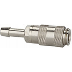 Schnellverschlusskupplung NW 2,7, Edelstahl 1.4305, Tülle LW 4, Betriebsdruck 0-35 bar, Mediums-/Umgebungstemp. -20 °C bis 200 °C. Einseitig absperrende Einhand-Schnellverschlusskupplung mit extrem kleinen Baumaßen und großem Durchgang bei geringem Druckabfall. Um Verletzungen oder den Peitschenhiebeffekt zu vermeiden, empfehlen wir den Stecknippel beim Entkuppeln mit einer Hand festzuhalten.
