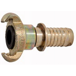 Klauenkupplung mit Schlauchanschluss, LW 19 (3/4"), Sicherungsbund, drehbar, Temperguss verz. und gelb passiviert, PN max. 10 bar. Die universelle Standardkupplung zur Druckluftversorgung am Bau und in der Industrie, in der Standardausführung nach DIN 3489, weltweit verwendet und überall im Einsatz.