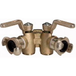 Doppelkükenhahn mit 2 Kupplungsabgängen, Hebelanschlag, Entlüftung, G 1 IG, DN 17, PN max. 10 bar, Betriebstemp. -15 °C bis 80 °C.
