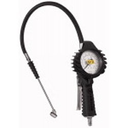 Standard-Handreifenfüllmesser, Tankstellenstecker, Schlauch drehbar, Mano Ø 80 mm, geeicht, 0-12 bar/170 psi, Stecknippel NW 7,2. Robuster Standard-Handreifenfüllmesser mit vollgummierter Schutzhülle, Druckmanometer mit bar- und psi-Anzeige. Geeichte, wahlweise ungeeichte Ausführung. Schlauchlänge 50 cm. Mit Stecknippel Messing für Kupplung NW 7,2 – 7,8.