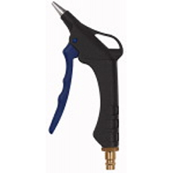 Blaspistole, Kunststoff, mit Kurzdüse, Nippel NW 7,2 - 7,8, Betriebstemperatur -20 °C bis 45 °C, PN max. 10 bar. Zum Ausblasen und Reinigen von Maschinen, Motoren, Lagern, Gleitflächen, Bohrungen aller Art, Hohlkörpern, Formen usw. Die Blaspistolen werden in einer Blister-Verpackung mit Eurolochung geliefert.