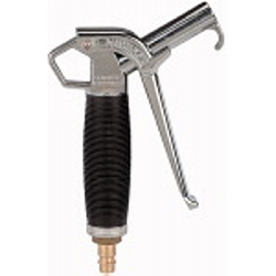 Hochleistungs-Blaspistole »Typhoon«, ohne Düse, Alu, Betriebstemp. -10 °C bis 50 °C, PN max. 10 bar, für Kupplungen NW 7,2 - 7,8. Stufenlos regelbare, leichtgewichtige und ergonomisch hervorragende Hochleistungs-Blaspistole mit ausgesprochen starker Blasleistung. Gegenüber herkömmlichen Standardpistolen hat die »Typhoon« eine ca. 3-fach höhere Blasleistung und liegt auch bei voller Druckbeaufschlagung leicht und sicher in der Hand. Zum Ausblasen von schwer zugänglichen Stellen sind Verlängerungsrohre lieferbar.