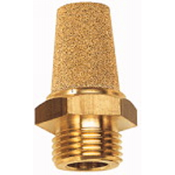 Sinterbronce-Schalldämpfer, Messing Gewinde/Sechskant, M5, SW 9 mm, Betriebsdruck 0 - 8 bar, Betriebstemp. -10 °C bis 250 °C. Zur Reduzierung von Abluftgeräuschen an pneumatischen Anlagen.