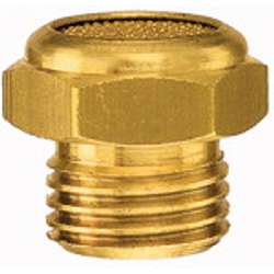 Sinterbronce-Schalldämpfer, flach, G 3/8 a., SW 19 mm, Betriebsdruck 0 - 8 bar, Betriebstemperatur -10 °C bis 250 °C. Zur Reduzierung von Abluftgeräuschen an pneumatischen Anlagen.