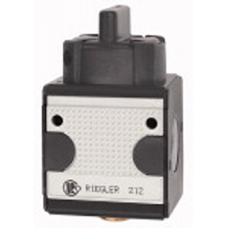 Kugelhahn 3/2-Wege »multifix«, abschließbar, mit Entlüftungsbohrung, BG 1, G 1/4, PE max. 16 bar, Med.-Umgebungstemp. max. 60 °C. Mit Knebelgriff, 90° drehbar, abschließbar, mit Entlüftungsbohrung inklusive Schalldämpfer.