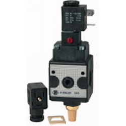 Schaltventil (3/2-Wegeventil) »multifix«, 24 V AC, 50 Hz / 12 V DC, BG 3, G 1/2, Eingangsdr. 2-10 bar, Med.-Umgeb.temp. max. 60 °C. Druckluftanlagen oder Teile von Anlagen können über ein elektrisches Signal ein- oder ausgeschaltet werden. 3/2-Wege-Ausführung inklusive Schalldämpfer. Beim Abschalten wird die Anlage gleichzeitig entlüftet.