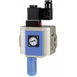 3/2-Wege-Anfahrventil »G«, 24 V DC, mit Haltewinkel und Schalldämpfer, BG 400, G 1/2, Eingangsdruck 2,5 - 9 bar. Kombiniertes Absperr- und Druckaufbauventil (Anfahrventil). Durch Sekundärdruck betätigt, zur kontrollierten Belüftung von Druckluftanlagen. Bei Aktivierung der elektrischen Spule öffnet das 3/2-Wegeventil. Wenn der Arbeitsdruck die Hälfte des Eingangsdrucks erreicht hat, öffnet das Ventil ganz. Bei Deaktivierung der elektrischen Spule schließt das 3/2-Wegeventil und die Leitung entlüftet über den Regler. Mit einstellbarer Drossel.