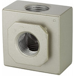 Verteiler »G«, mit 2 Abgängen, BG 400, G 1/2, Eingangsdruck 0 - 9 bar, Mediums-/Umgebungstemperatur max. 70 °C. Zweifachverteiler in schmaler Ausführung mit je einem Abgang oben und unten oder vorne und hinten.