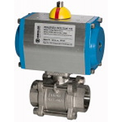 2-Wege-Edelstahlkugelhahn, pneumat. Stellantrieb L=133mm, doppeltwirk., Betriebstemp. -20°C bis 70°C, Rp 3/4, DN 20, PN max. 63bar. 2-Wege-Hahn, 3-teilig, voller Durchgang. Pneumatischer Schwenkantrieb in doppelt- oder einfachwirkender Ausführung und integriertem Stellungsanzeiger.