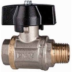 Kugelhahn schwere Ausführung, Flügelgriff, IG/AG, Messing vern., Betriebstemp. -20 °C bis 130 °C, G/R 1/4, DN 8, PN max. 80 bar. Anwendungsbereich: Druckluft, Wasser, neutrale und ungiftige Gase, Heizöl (EL), Heizöl (S), Schmieröle, Dieselöle.