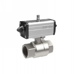 Messing-KH, pneum. Stellantrieb, doppeltw., MSV, Betriebstemp. KH -20 °C bis 150 °C, Rp 3/8, DN 10, PN max. 16. Messingkugelhahn mit pneumatischem Stellantrieb. Pneumatischer Doppelkolbenschwenkantrieb, Doppelschwingenprinzip.