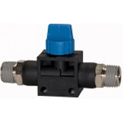 Absperrventil »Blaue Serie«, R 3/8 a., R 3/8 a., mit Gewindebeschichtung, Arbeitsdruck max. 15 bar, Kunststoff/Messing vernickelt. Unsere Schnellsteckverbinder-Serie aus Kunststoff bzw. vernickeltem Messing. Die Teile sind einsetzbar in Verbindung mit Kunststoffschläuchen und Kupferrohren.