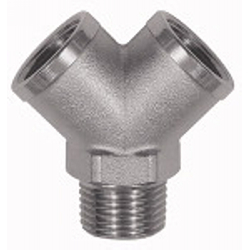 Verteiler, 2fach, Außengewinde R 1/2, Abgänge 2 x Innengewinde G 1/2, MS vernickelt, Betriebsdruck max. 60 bar, Temp. max. 150 °C. Verteiler, 2fach, Messing vernickelt