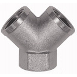 Verteiler, 2fach, Innengewinde G 3/8 Abgänge 2 x Innengewinde G 3/8, MS vernickelt, Betriebsdruck max. 60 bar, Temp. max. 150 °C. Verteiler, 2fach, Messing vernickelt