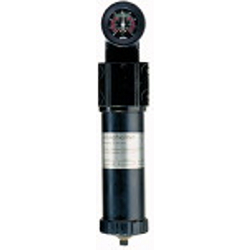 Aktivkohlefilter mit Differenzdruckmanometer, 0,005 mg/m³, G 1 1/2, Eingangsdruck 4 - 16 bar, Med.-Umgebungstemp. 5 °C bis 60 °C. Zur Adsorption dampfförmiger Medien. Die Vorschaltung eines Mikrofilters ist notwendig, sofern keine getrocknete Luft zur Verfügung steht.
