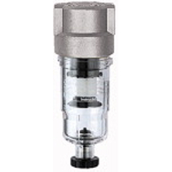 Filter »Standard-mini« mit Polycarbonatbehälter, 8 µm, BG 0, G 1/4, PE max. 16 bar, Mediums-Umgebungstemperatur max. 60 °C. Zentrifugalabscheider mit Sinter-Filterelement. Kompakte Kleinbauweise.