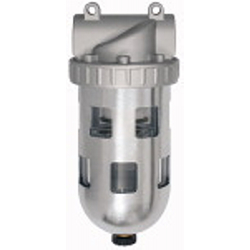 Filter »Standard«, PC-Behälter und Schutzkorb, 40 µm, BG 4, G 1 1/2, PE max. 16 bar, Med.-Umgeb.temp. max. 60 °C, Ablassventil: HA. Zentrifugalabscheider mit Sinter-Filterelement.
