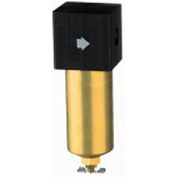 Filter für hohe Drücke bis 40 bar, mit Handablassventil, 40 µm, G 3/8, Kondensatbehälter aus Messing, Mediumstemp. max. 60 °C. Zentrifugalabscheider mit Sinter-Filterelement.
