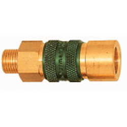 Unverwechselbare Schnellverschlusskupplung NW 5, MS blank, G 1/8 IG, grün, max. 35 bar, Mediums-/Umgebungstemp. -20°C bis 100°C. Einhand-Schnellverschlusskupplung mit großem Luftdurchlass. Durch farbliche Kennzeichnung von Kupplung und Stecker sowie durch unterschiedliche Kupplungsprofile zwischen den 4 verschiedenen Farben können verschiedene Medien auf engem Raum gefahrlos und unverwechselbar verbunden werden. Es passen nur Kupplungen und Stecker derselben Farbe zusammen.