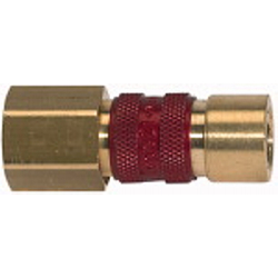 Unverwechselbare Schnellverschlusskupplung NW 5, MS blank, G 1/8 IG, rot, max. 35 bar, Mediums-/Umgebungstemp. -20°C bis 100°C. Einhand-Schnellverschlusskupplung mit großem Luftdurchlass. Durch farbliche Kennzeichnung von Kupplung und Stecker sowie durch unterschiedliche Kupplungsprofile zwischen den 4 verschiedenen Farben können verschiedene Medien auf engem Raum gefahrlos und unverwechselbar verbunden werden. Es passen nur Kupplungen und Stecker derselben Farbe zusammen.