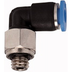 L-Steckverschraubung »Blaue Serie« mini, drehbar, M7, für Schlauch-Außen-Ø 6 mm, Arbeitsdruck max. 10 bar, Kunststoff/MS vern.. Unsere Schnellsteckverbinder-Serie aus Kunststoff bzw. vernickeltem Messing in platzsparender Minibaureihe.