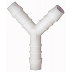 Y-Schlauchverbindungsstutzen, für Schlauch LW 3 mm, Winkel 90°, Überdruck max. 10 bar, Temperaturbereich -40 °C bis 90 °C, POM. Schlauchverbindungsteile mit hoher Festigkeit, Zähigkeit, geringem Gewicht, Abriebfestigkeit und großer Schlagfestigkeit.