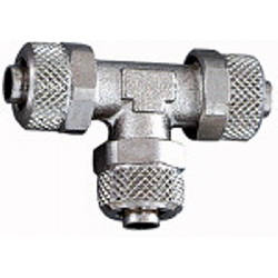 T-Verbinder, für Schlauch 10/8 mm, SW 12, Arbeitsdruck max. 18 bar, Messing vernickelt.